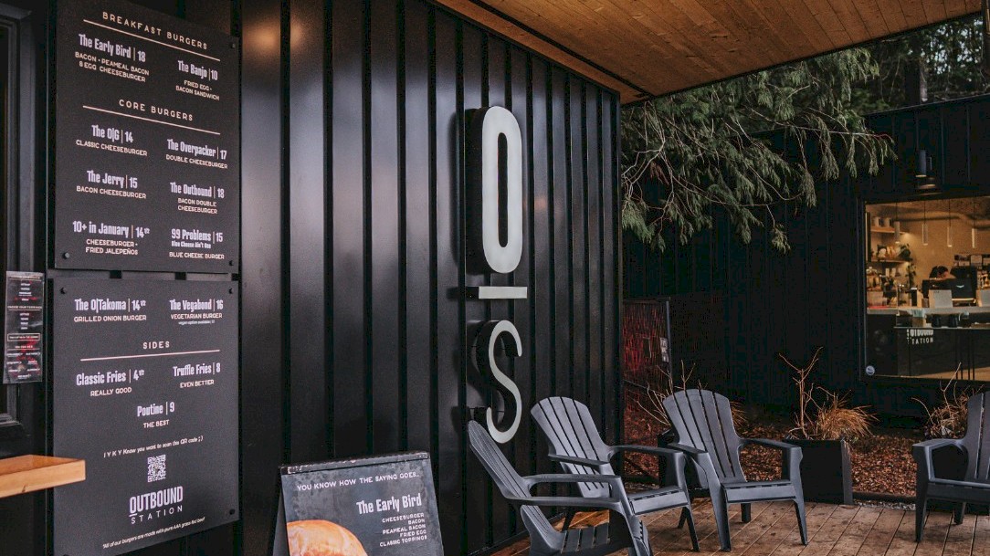 Outbound Station is a quick-dine craft burger shop and café located directly on Highway 99 in Britannia Beach. This cafe/restaurant caters to daily commuters, travellers, and locals who value high-quality service and experiences, the outdoors, and recreational adventure. Stop in to grab a craft coffee, snacks for the road, or their super tasty smash burgers.