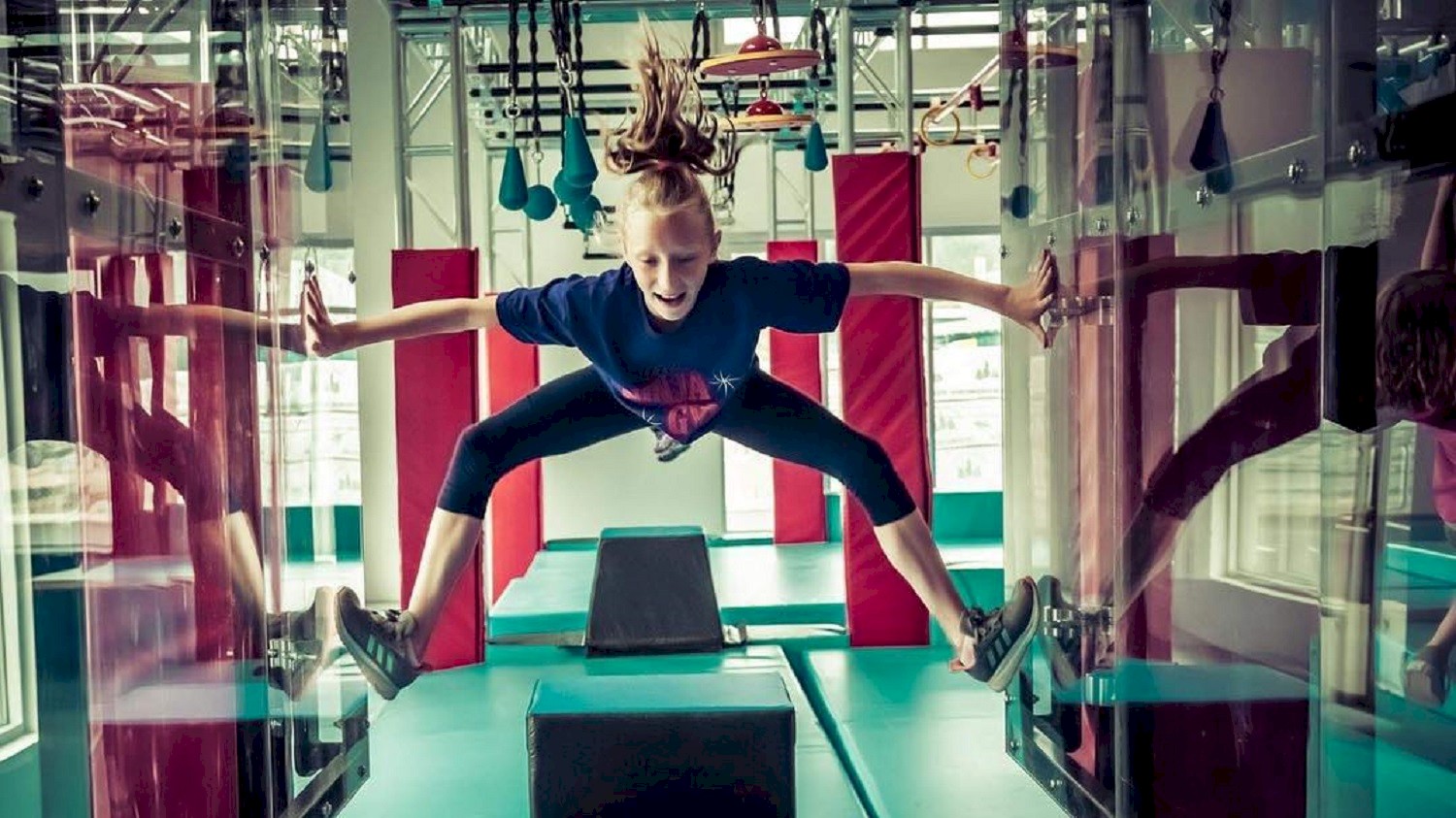 Embark on a Tarzan-esque journey with the pulse-quickening Swoop Slider, conquer the formidable Warped Wall in a race against the clock, and channel your inner ninja on the soft play mats and airbags. The Ninja Gym is a 7000 SQFT indoor ninja warrior wonderland bursting with a variety of obstacles and challenges.