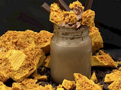 - Creamy hot chocolate blended with salted toffee.