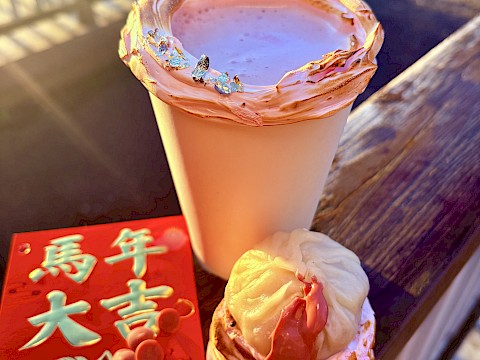 Each hot chocolate comes with a red pocket, which honours the Chinese New Year traditions of luck, wealth, and fresh beginnings.