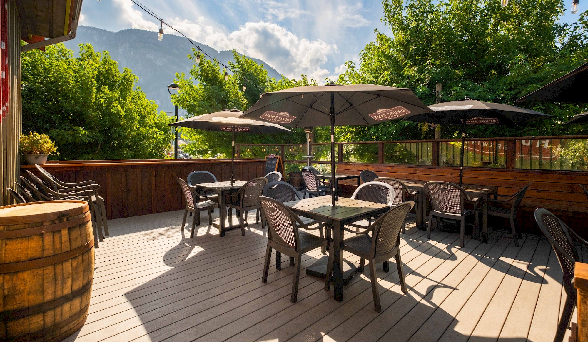 Nestled at the base of the Stawamus Chief, Match Eatery and Public House is a fantastic spot for those seeking a combination of great food and mesmerizing views. The spacious patio has views of Howe Sound and the coastal mountains, not to mention the towering Chief right in front. On a good day you may even see some climbers scaling the giant monolith, while enjoying your pub favourites.